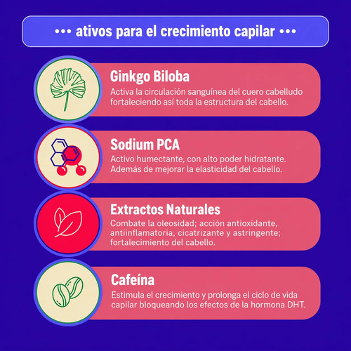 Tónico de uso contínuo para reducir la caída del cabello y estimular el crecimiento del cabello. Actúa fortaleciendo el folículo piloso para que las raíces sean fuertes y las hebras tengan una vida más larga. Promueve fibras sanas, más resistentes y, de esta manera, el ciclo de crecimiento del cabello vuelve a la normalidad, evitando la caída constante y gradual.